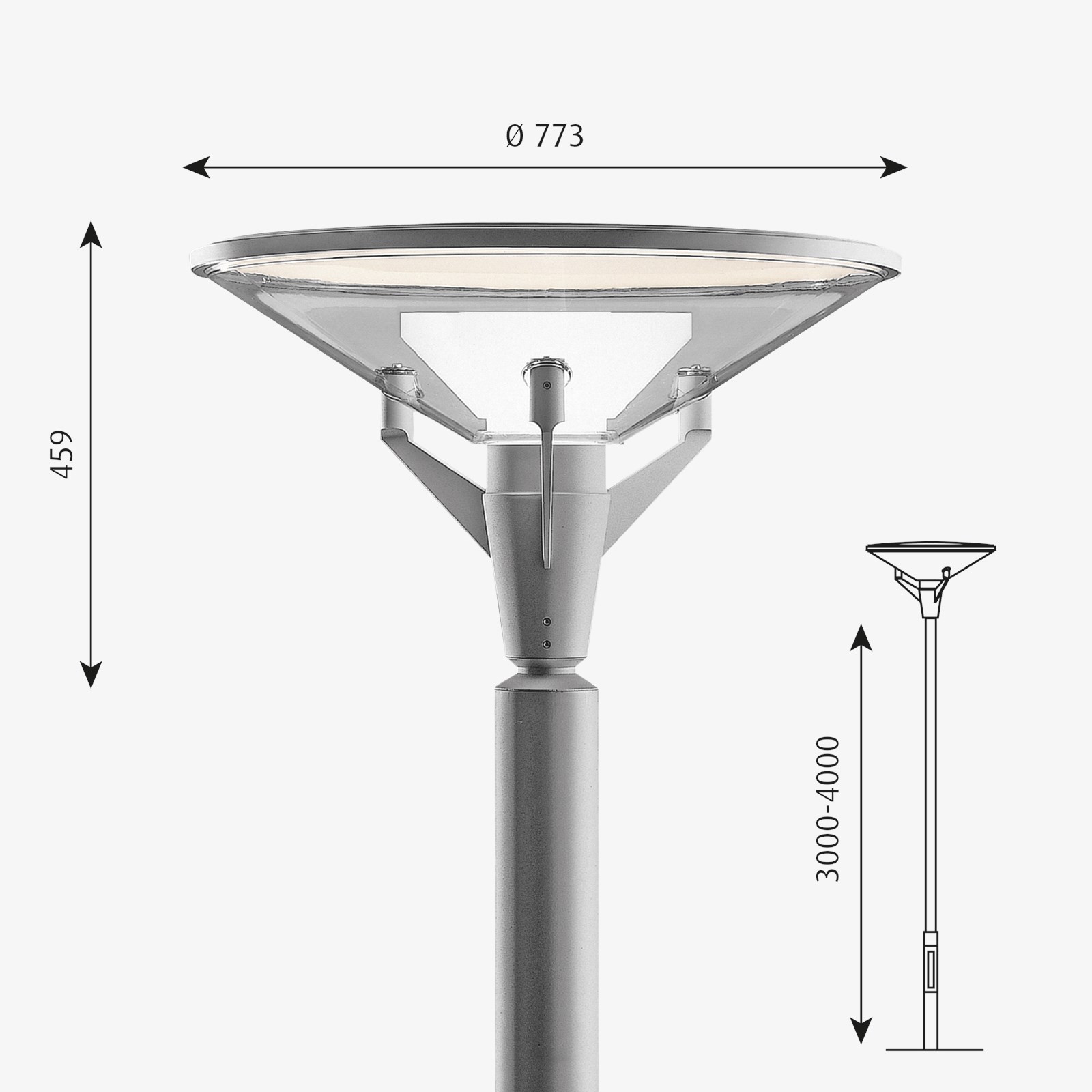 Console and supporting arms: Die-cast aluminium. LED variants use unibody frame that transfers heat from LED to atmosphere.