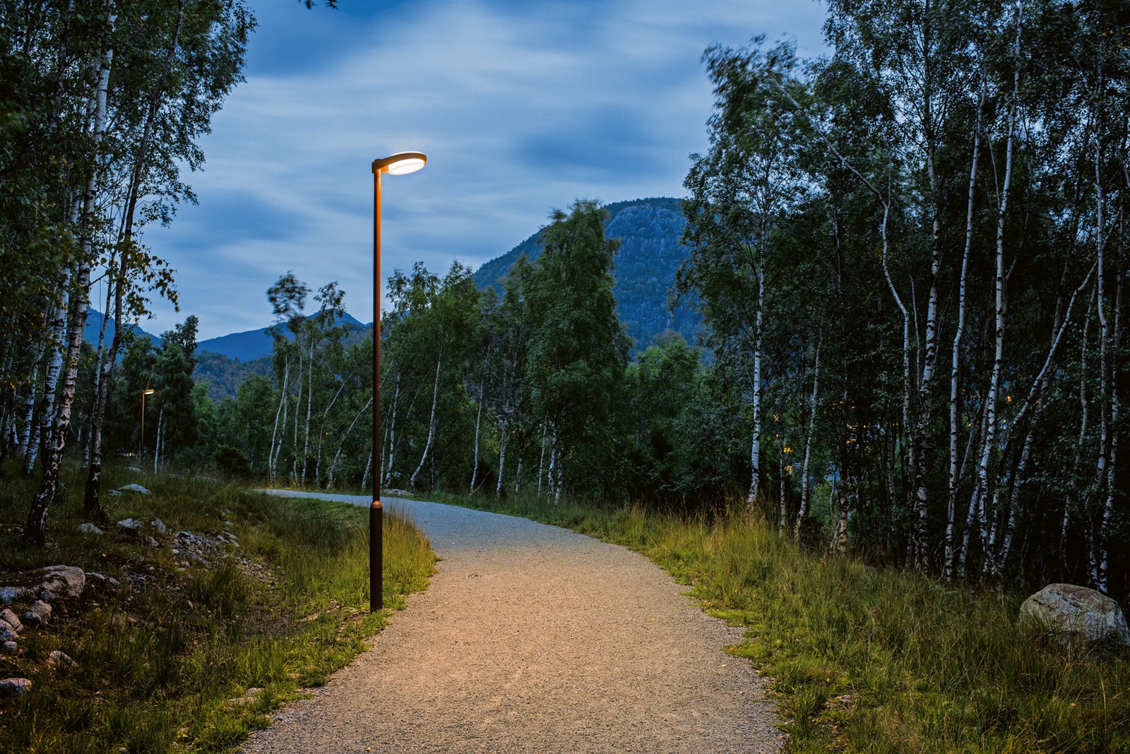 Light distributions: 1 round symmetrical, 1 asymmetrical