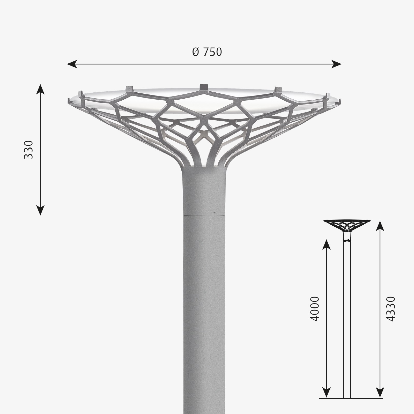 Pole dimension: Ø 115mm Installation cable: 5m, 5x1mm2 (Class I) or 5m, 4x1mm2 (Class II). Driver: Location in the post top.