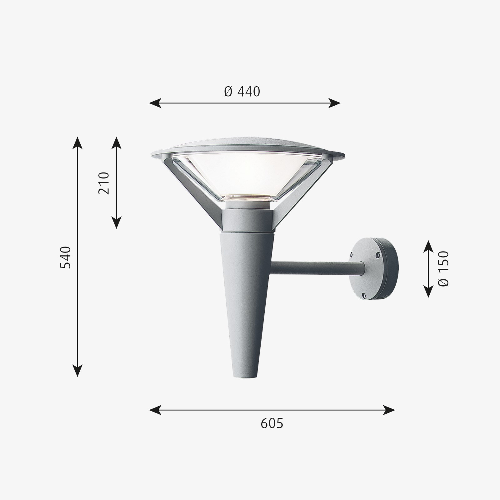 polycarbonate. Frame: Die cast aluminium. Wall box: Die cast aluminium. Arm: Extruded aluminium.