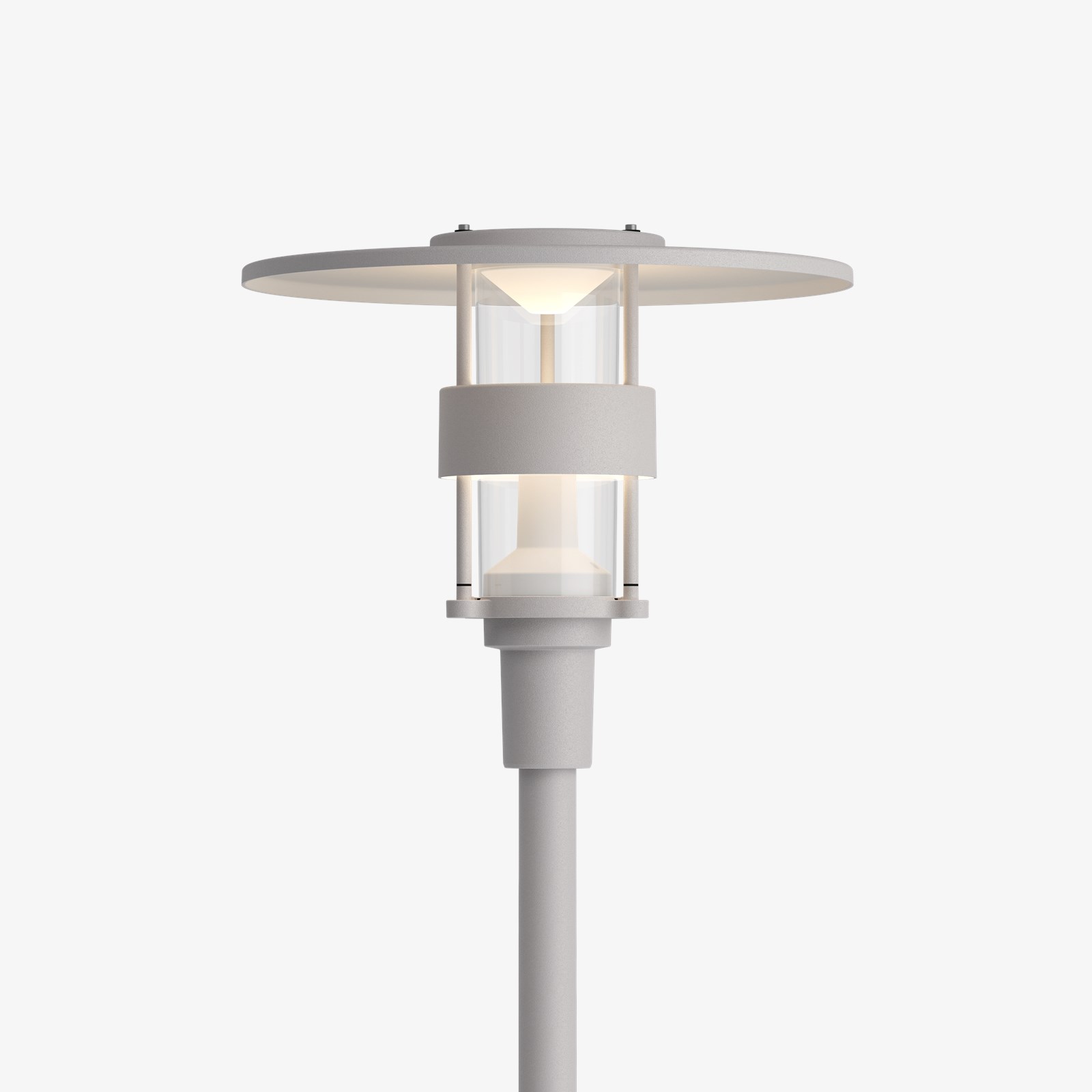 The fixture emits symmetrical glare-free light directed downwards. The top shade directs the light downwards and prevents light from being emitted upwards from the post top. The white painted reflectors result in diffuse and comfortable light distribution. The reflector ring protects against direct glare. Two components of reflected light provides a high level of vertical light for people to feel safe and comfortable. Conical optical solution ensures a good balance between luminance and downward directed light. BUG U2 available (US). The fixture design is identifiable when the light is on as well as off. LED technology with more options of standard CCTs. Electronic dimmable driver. Smart city compatible solution available.