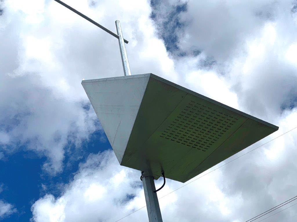 The PV array were mid mounted on the poles to utilise the use heavy duty galvanised sections. This minimised windage and deflection on the poles.